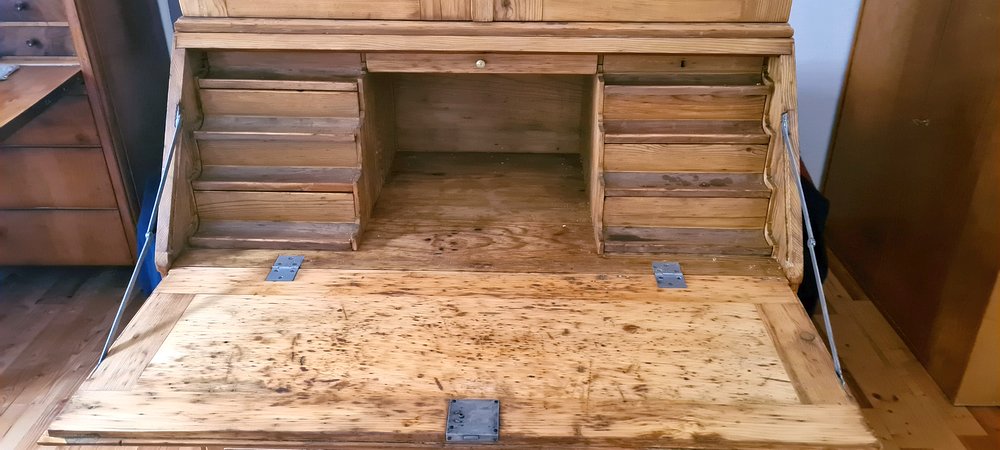 Schreibsekretär repariert, Fehlteile ergänzt und mit Schellack neu poliert -